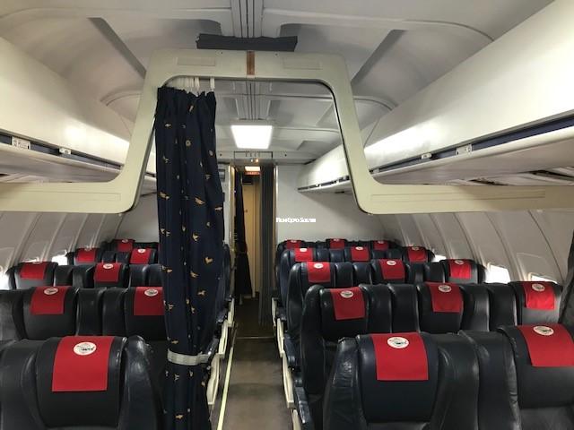 - Realistic passenger cabin with seating, aisle and lighting
