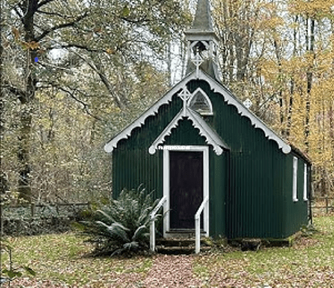 - Wooden chapel structure with historic aesthetic